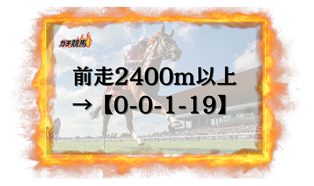 前走が2400m以上だった馬の成績は、過去10年で【0-0-1-19】。
