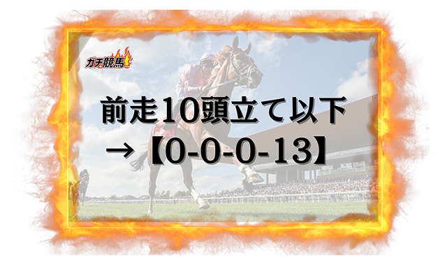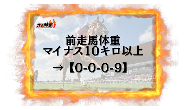 前走が馬体重マイナス10キロ以上だった馬は、1頭も馬券に絡んでいません。