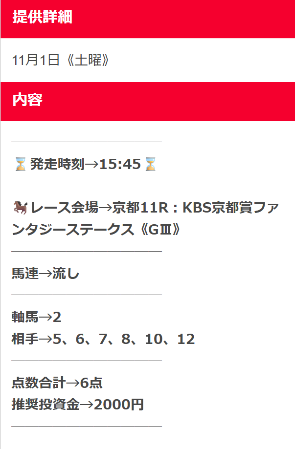 そして最後に、エリザベス女王杯で参考にするべき無料予想をもう1度ご紹介しておきます。