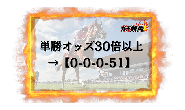 単勝オッズ30倍以上の穴馬は、過去10年で1度も馬券に絡んでいません。