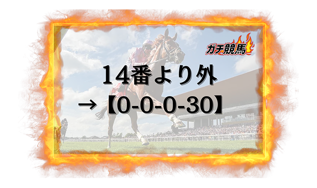 福島記念では、14番より外枠の馬の複勝率が0%です。