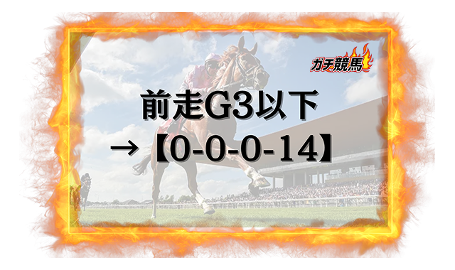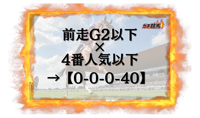 前走がG2以下のレースで4番人気以下だった馬は、複勝率が0%となっています。