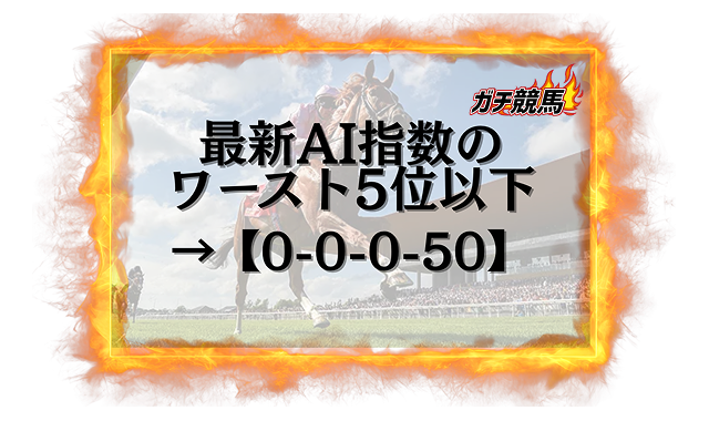 カチケンが公開する「カチ指数」というAI指数のワースト5位以下の馬は、直近10戦の重賞で【0-0-0-50】と1頭も馬券に絡んでいません。