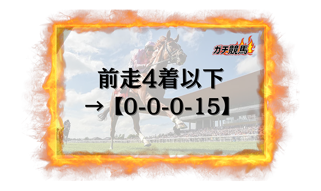 京都2歳Sでは、前走4着以下に敗れている馬の複勝率が0%となっています。