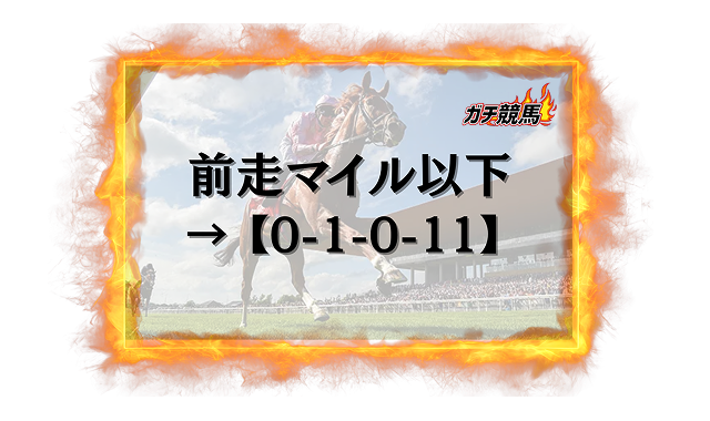 つまり、京都開催では前走がマイル以下の馬は1頭も馬券に絡んでいません。