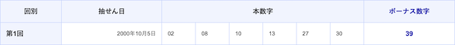 今回は、第一回ロト6の当選番号を見てみましょう。