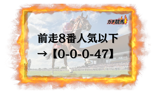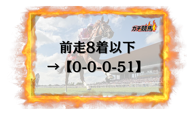 前走が8番人気以下だった馬は、前走の結果に関わらず結果を残せていません。