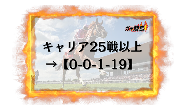 本レースでは3歳〜5歳馬が活躍しているので、キャリア25戦以上という条件では【0-0-1-19】という厳しい成績となっています。