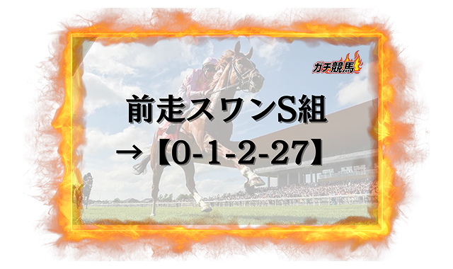 前走スワンS組は【0-1-2-27】と成績が悪く、複勝率は10%です。