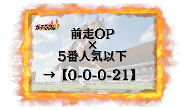 前走が格下OPクラスで5番人気以下だった馬は、みやこSでは馬券内に来ていません。