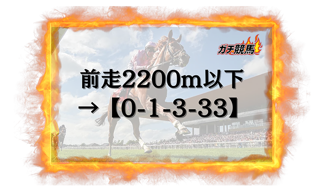前走が2200m以下だった馬に関しては、過去10年で勝ち馬が1頭も出ていません。