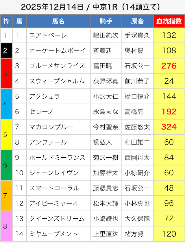| 2025/12/14 | 中京1R | ○ | 50,200円 |