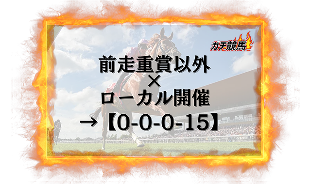 前走が重賞以外でローカル開催の馬は、過去8年間馬券に絡んでいません。