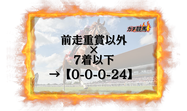 前走重賞以外で7着以下に敗れている馬の複勝率は0%となっています。