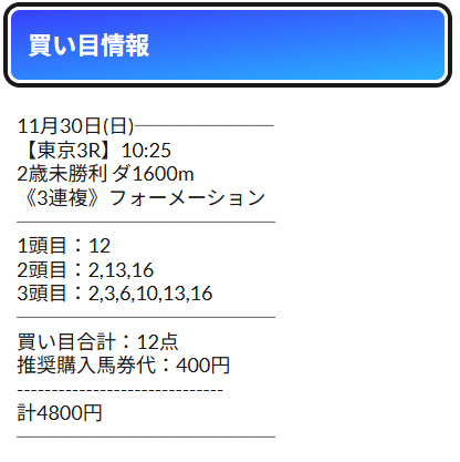 中には1回のレースで、10万円を超える払い戻しもある程の質の高い予想を公開しています。