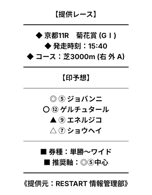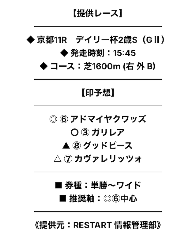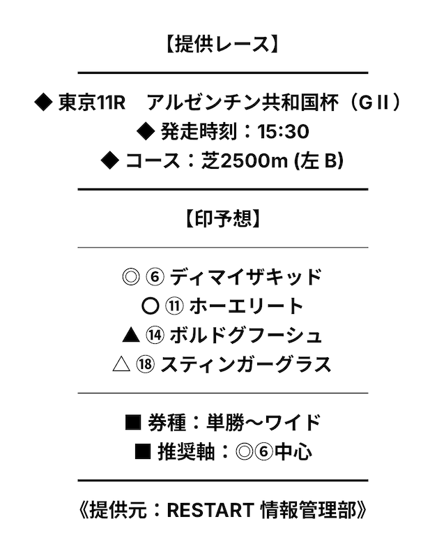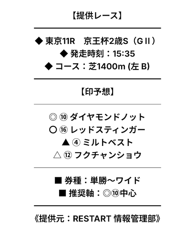 リスタートは、土日に1レースずつ重賞の無料予想を公開。
