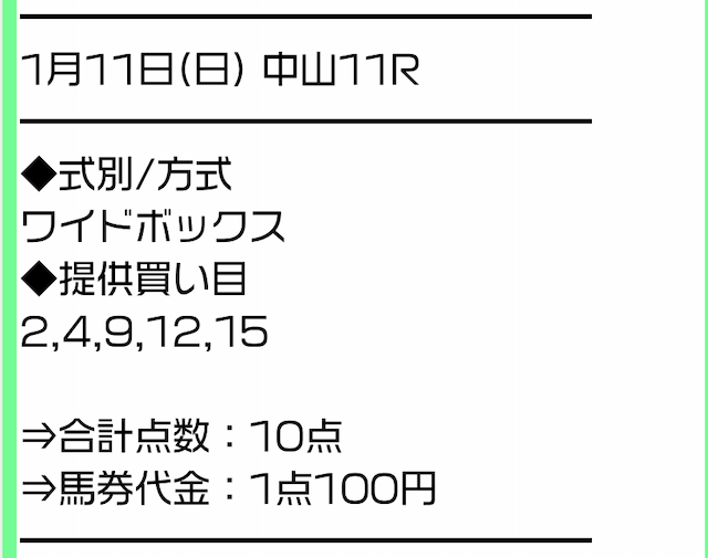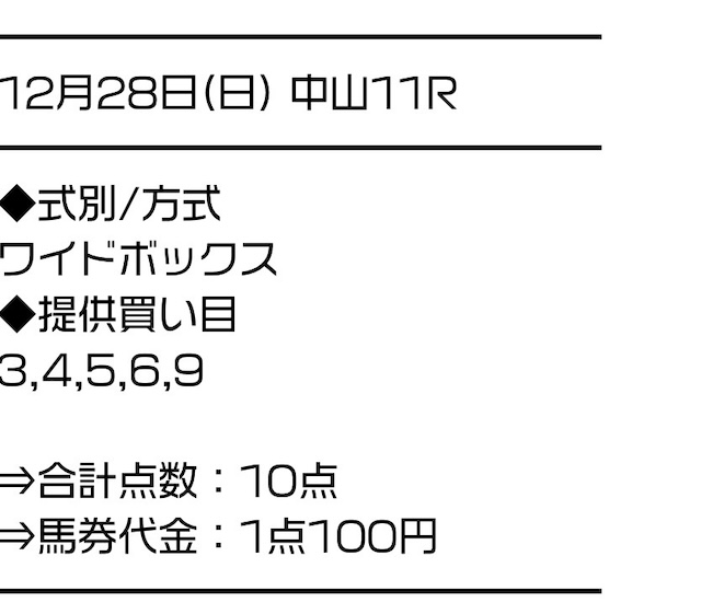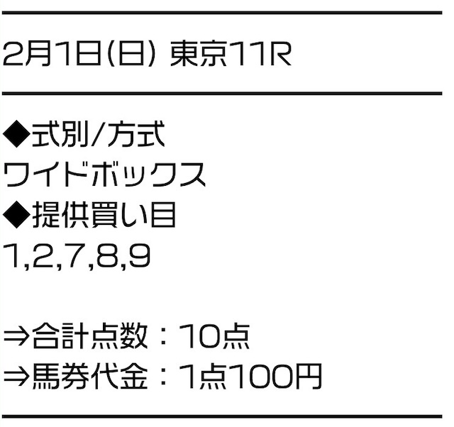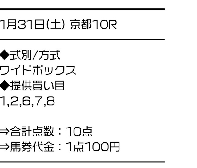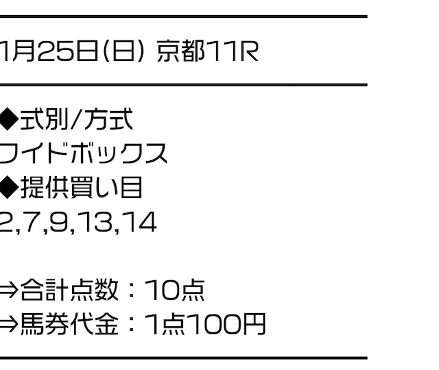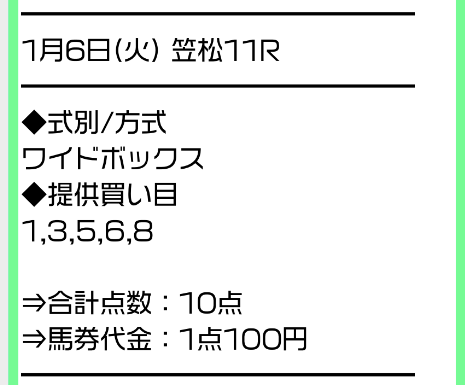 実際に公開された買い目はこちらです。
