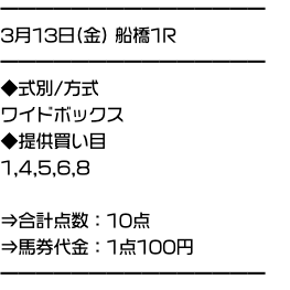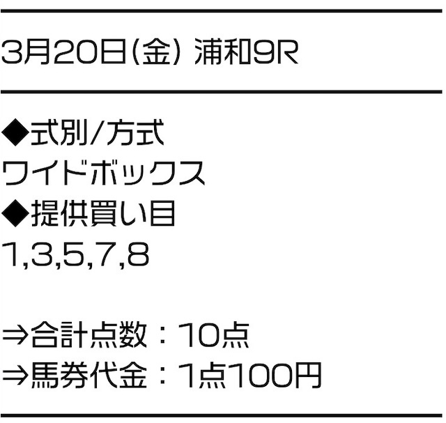 | 2026/3/20 | 浦和9R | ◯/1,300円 | × | -1,300円 |