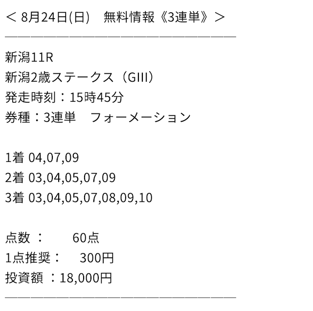 私はスター競馬を信じて、1点3,300円の計9,900円で勝負します。