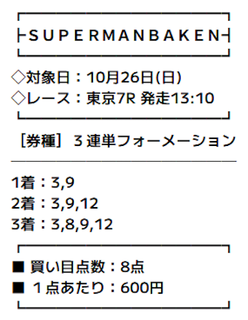 続いて、スーパーマンバケンの有料予想の検証に移ります。