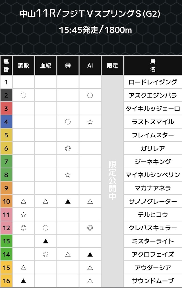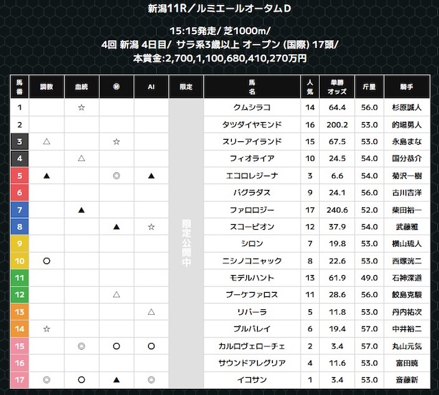 その他も、予想のロジックこそ不明ですが、印が多い馬に対して気になる点はなく、順当な狙い方と行った印象です。