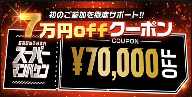 いまなら新規登録で7万円OFFのクーポンが貰えるので、一攫千金を狙いたい方はぜひチェックしてみてください。