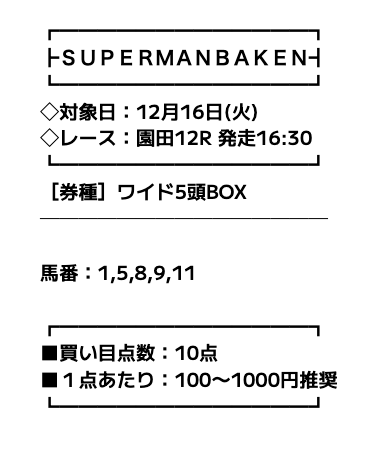 それは、スーパーマンバケンの「高額配当レースの選定理論」という独自のロジックが起因しているようです。