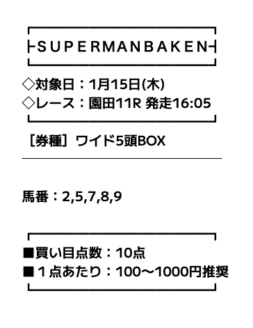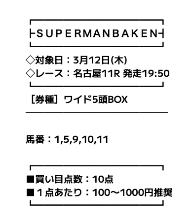 ということで、今回はスーパーマンバケンの無料・有料予想に参加し、その実力を徹底調査したいと思います。