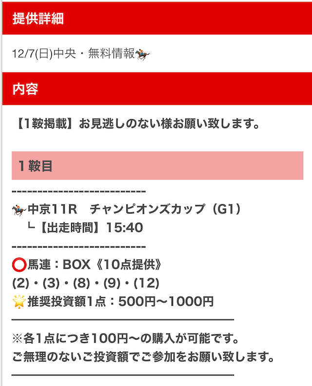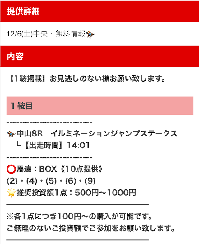 | 買い目の提供日時 |