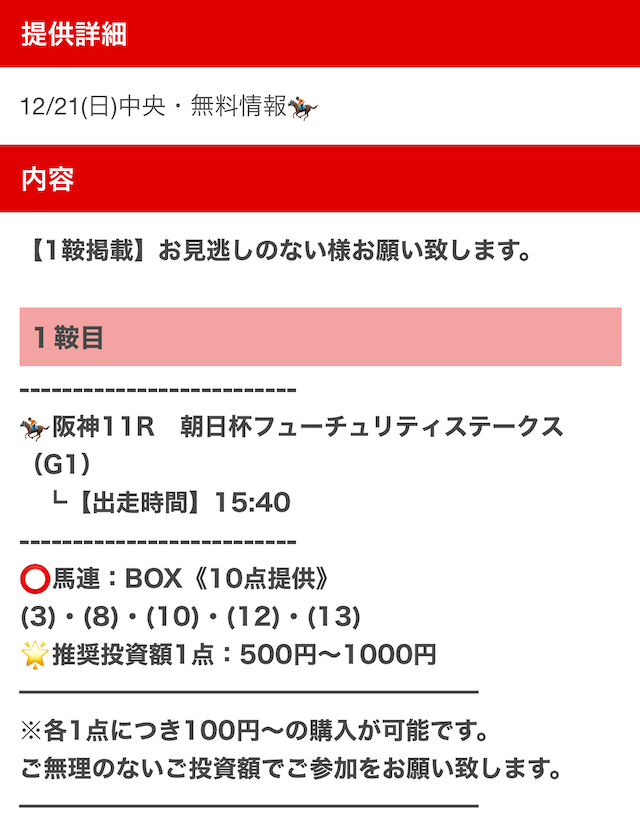 無料予想・有料予想ともに予想の質に不満はありませんでしたが、唯一の欠点は・・・