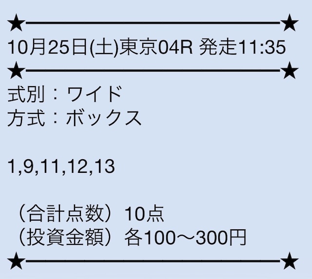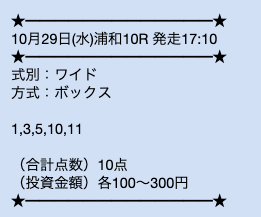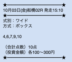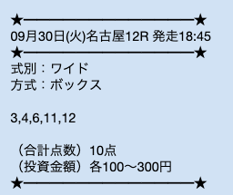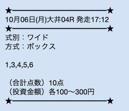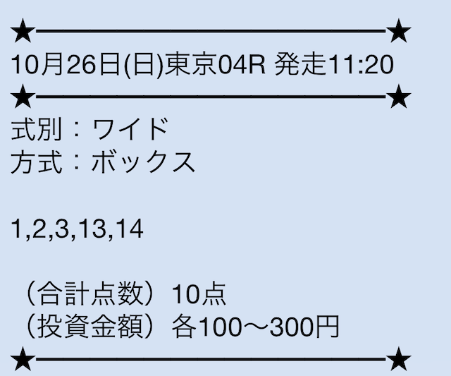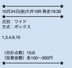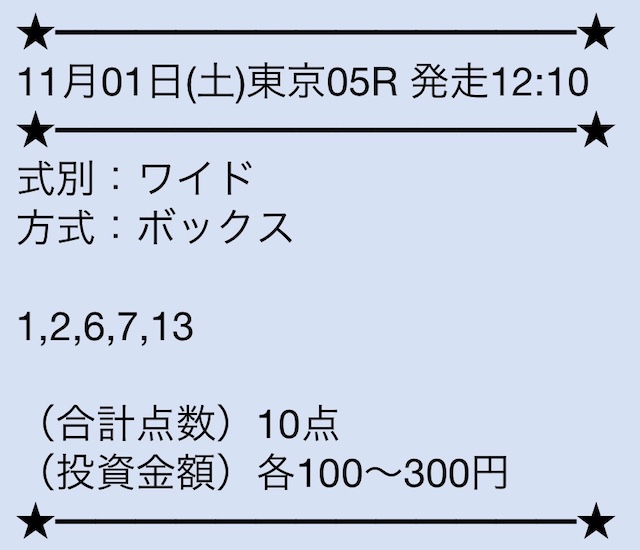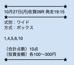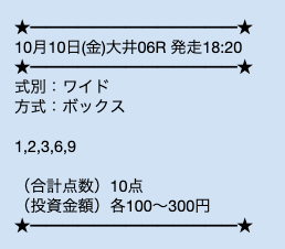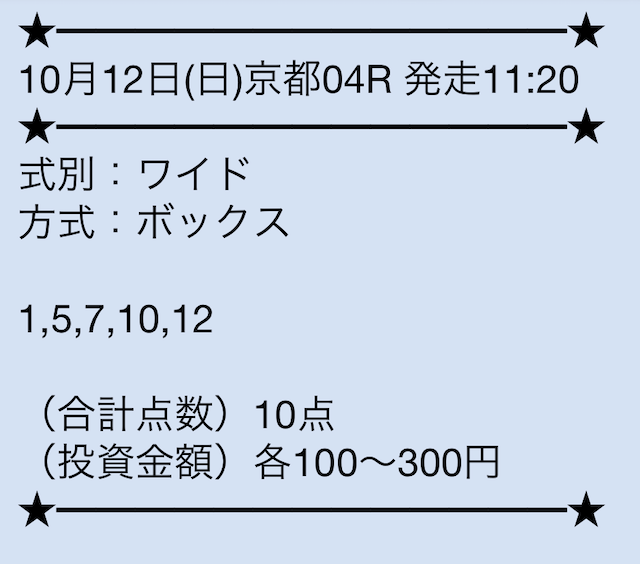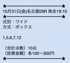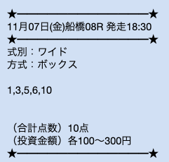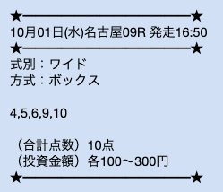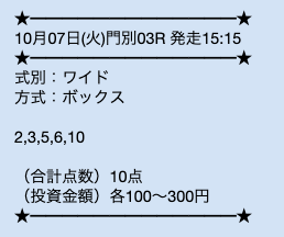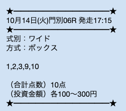 ツカメルはワイドのボックス予想を公開しており、買い目の点数は10点。