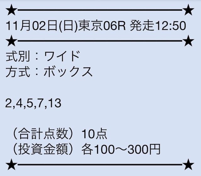 無料予想の精度が高いから安心して使える。ワイドとはいえ2週連続的中はマジで凄い。