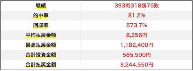 実際に万馬券も何回か取れてるし、回収率はかなり高い印象。