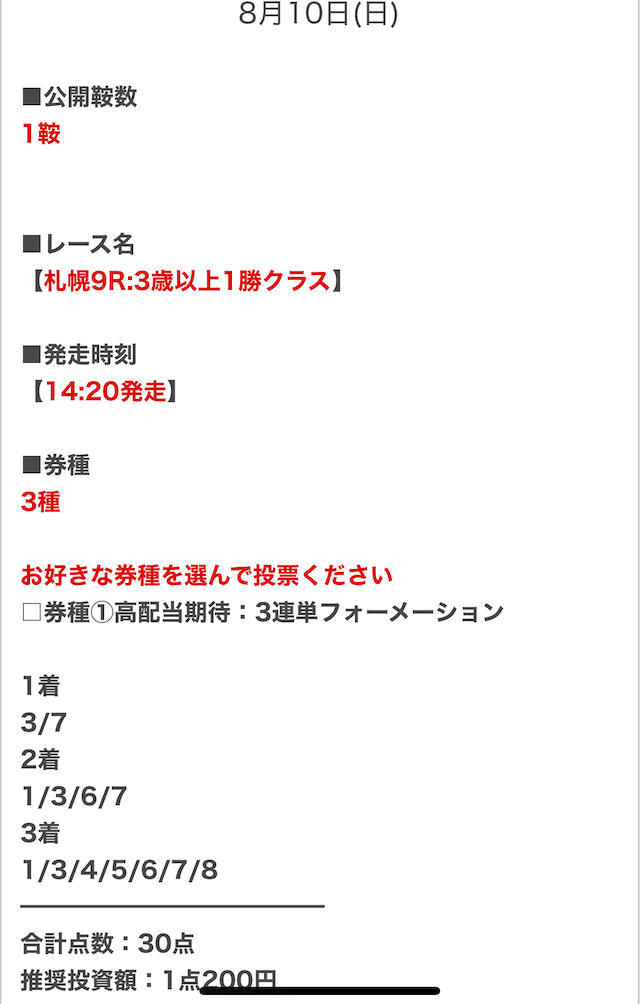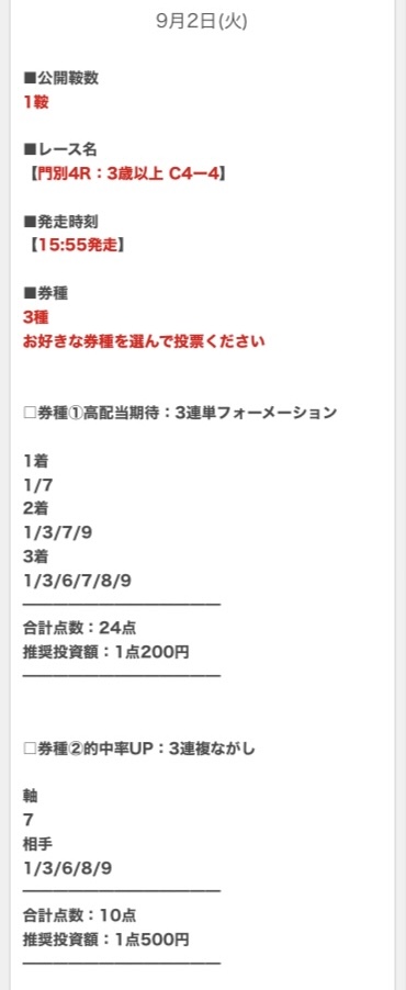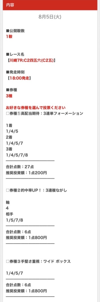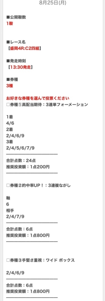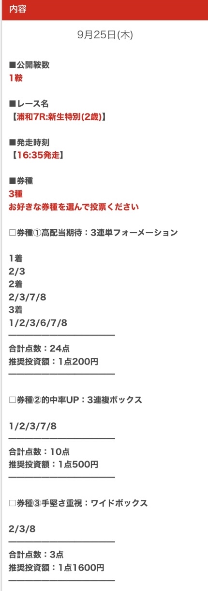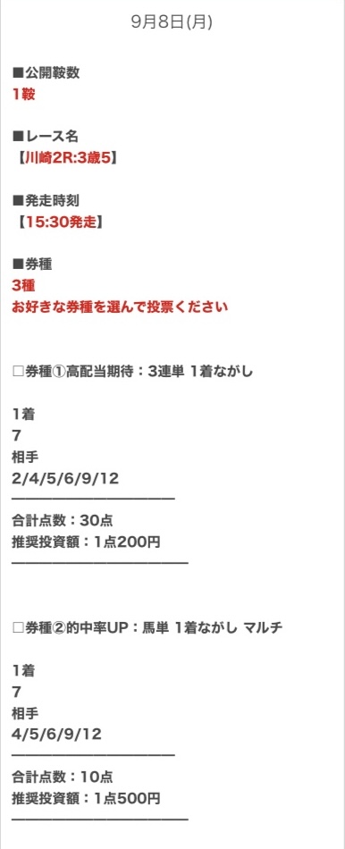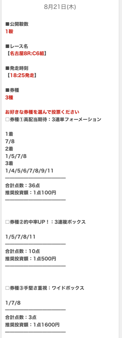 順当に行けば不的中はないと思うので、私は推奨金額どおりに勝負します。
