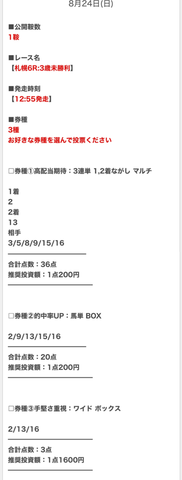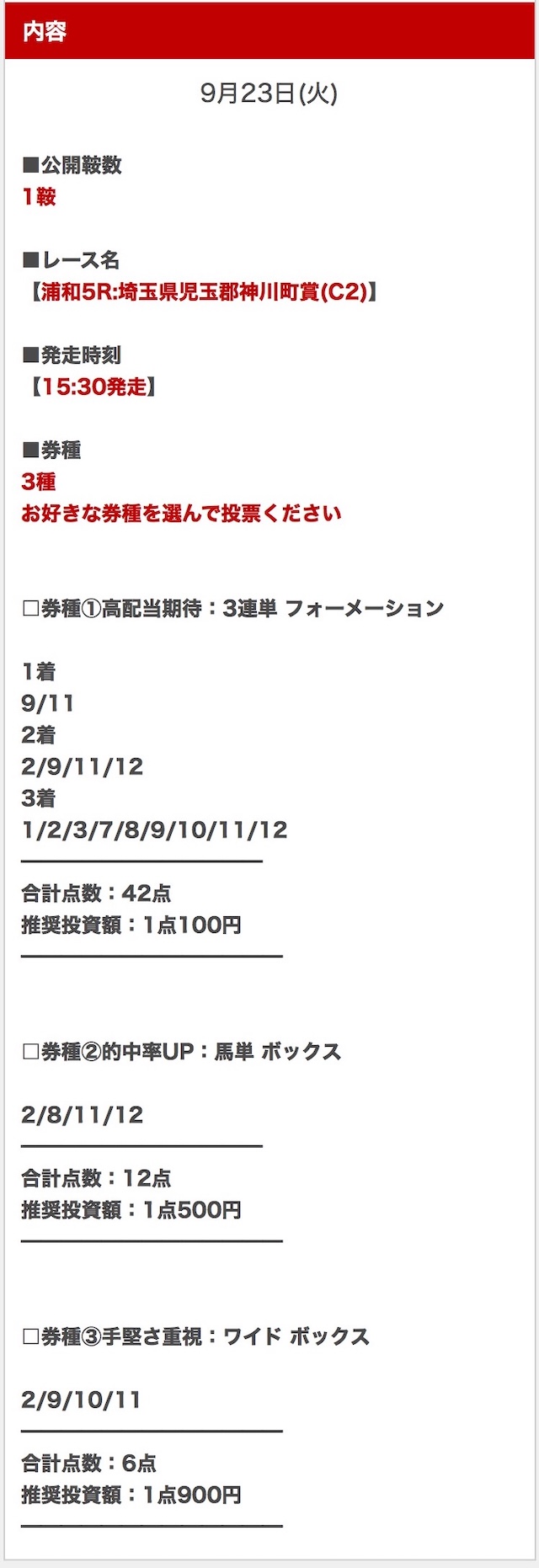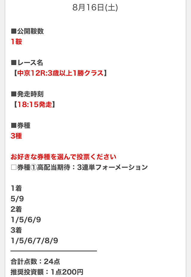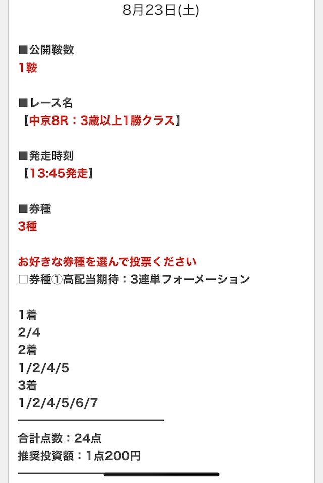 順当に行けば不的中はないと思うので、私は推奨金額どおりに勝負します。