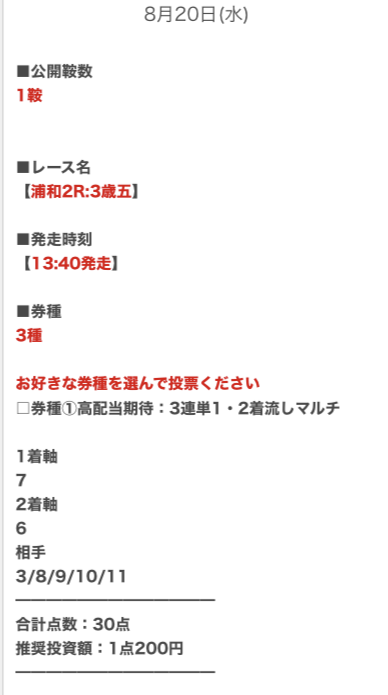 今すぐに始めて、買い目を受け取ってみて下さい。