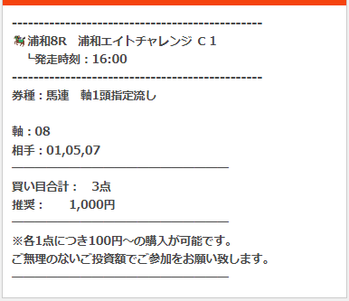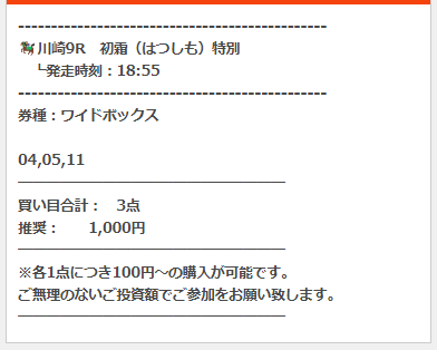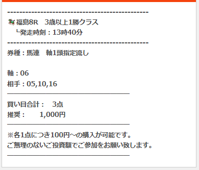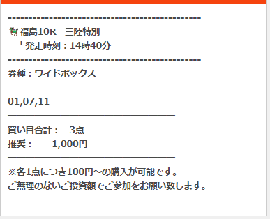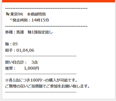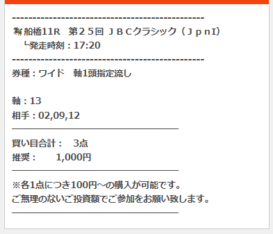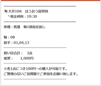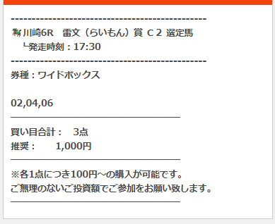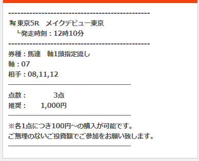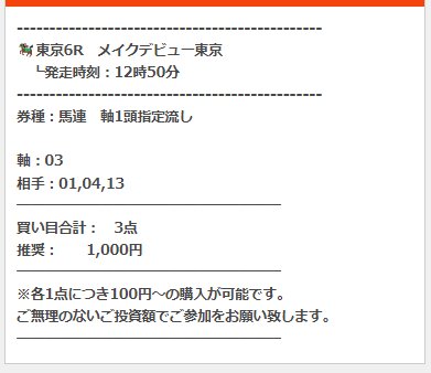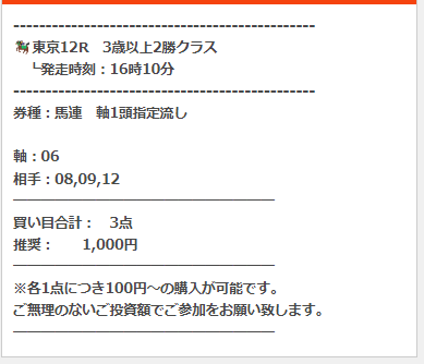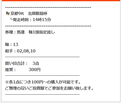 まあ堅めだけど、一か八かで大穴ばっか狙ってる予想家よりはいいわな。堅実に勝たせてくれるサイトだと思いますよ。