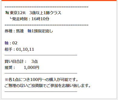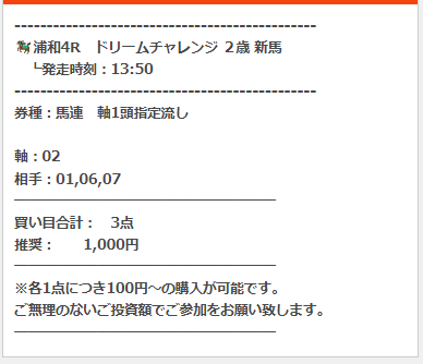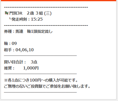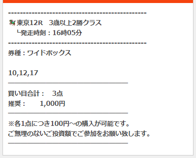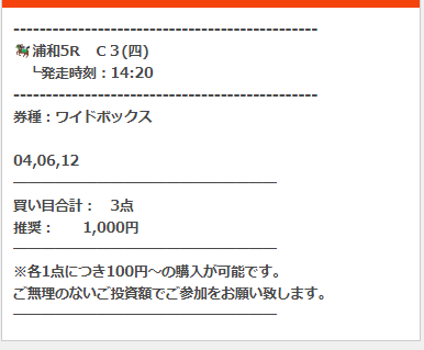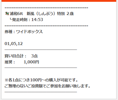 不安は残りますが、うま遊勝を信じて推奨金額通り1点500円で馬券を購入。