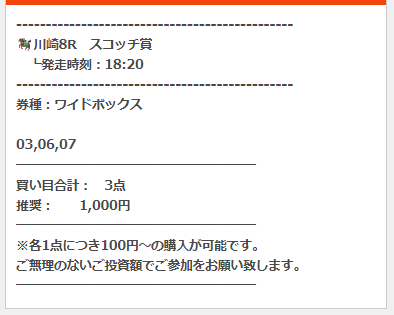 コツコツ稼ぎたい方、軍資金を調達したい方向けの予想と言ったところでしょうか。