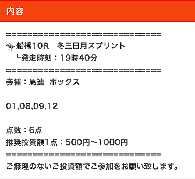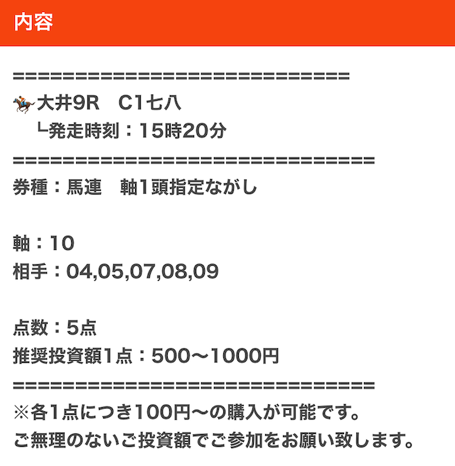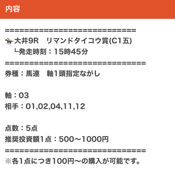 では、実際に公開された買い目を見てみましょう。