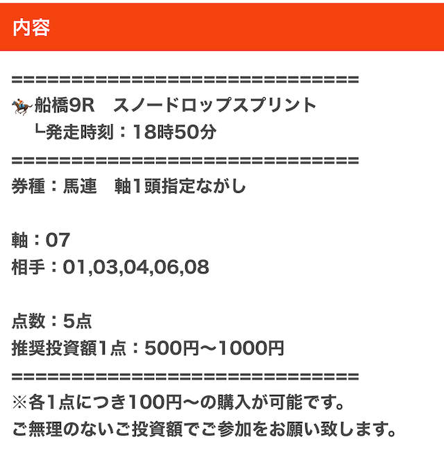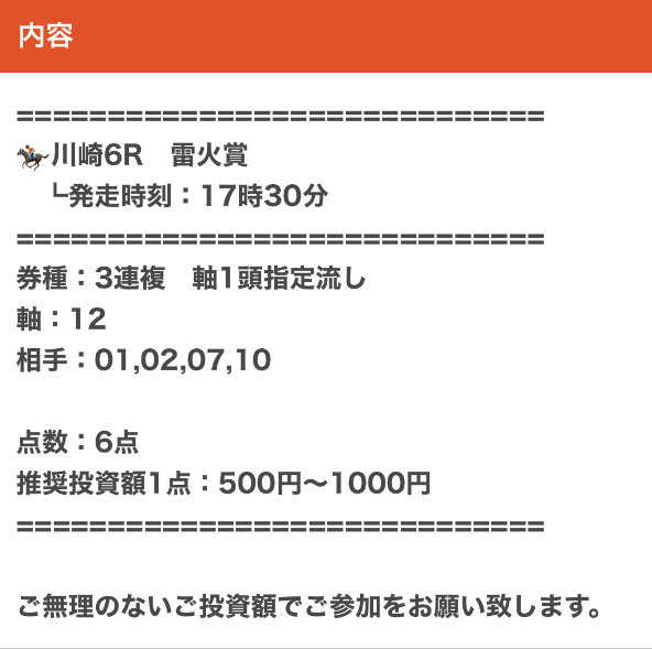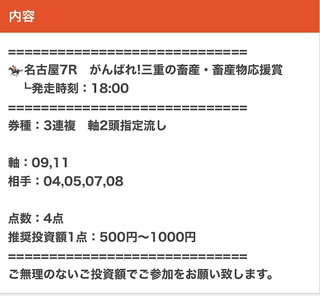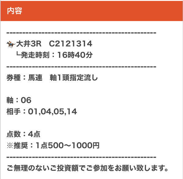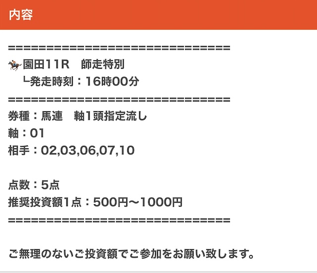 | 推奨馬券代 | 1レース300円〜 |