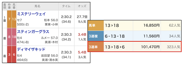 | ⑬メイショウタバル | 8.6倍 | 5番人気 |
