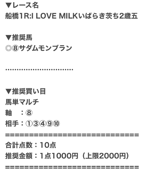 | 馬レンチャン【中央】 | 30,000円 | 土日2鞍/馬連 (12,000円/20,000円) |