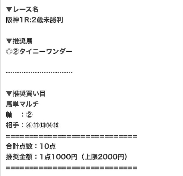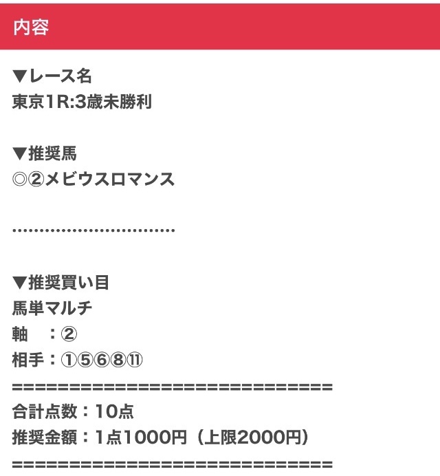 では、実際に公開された買い目を見てみましょう。