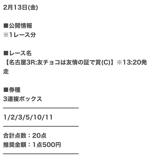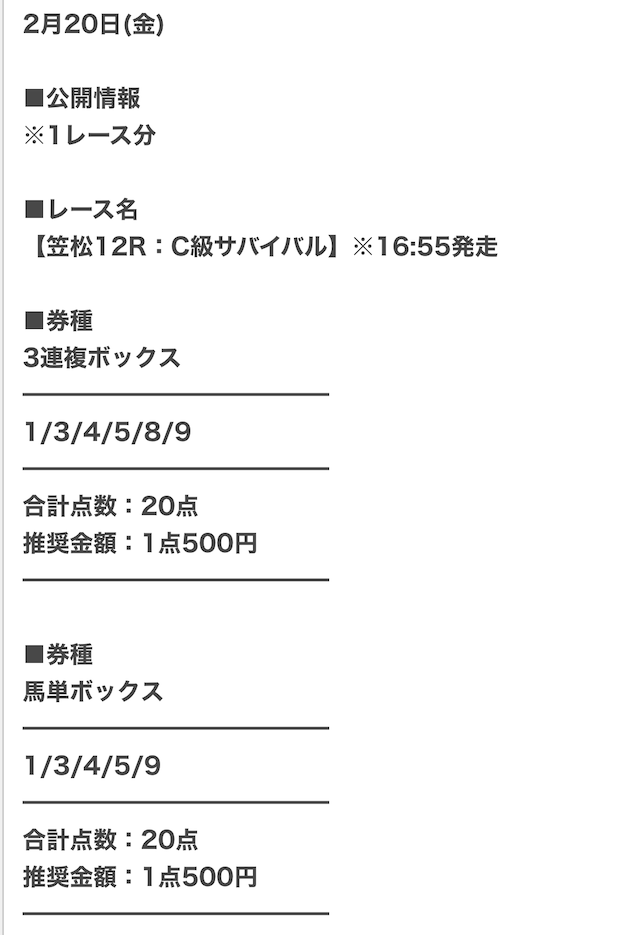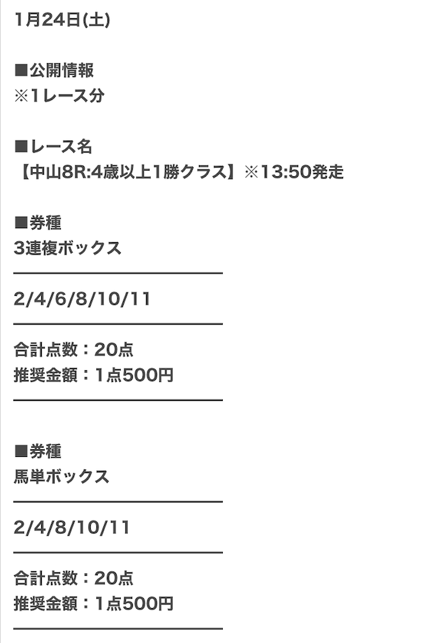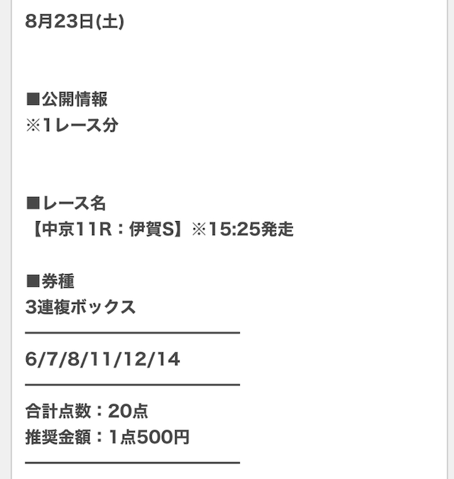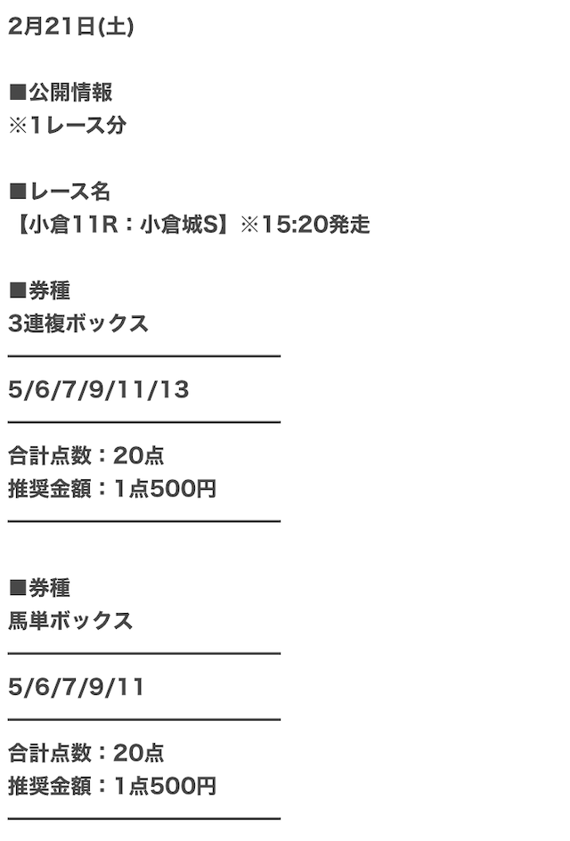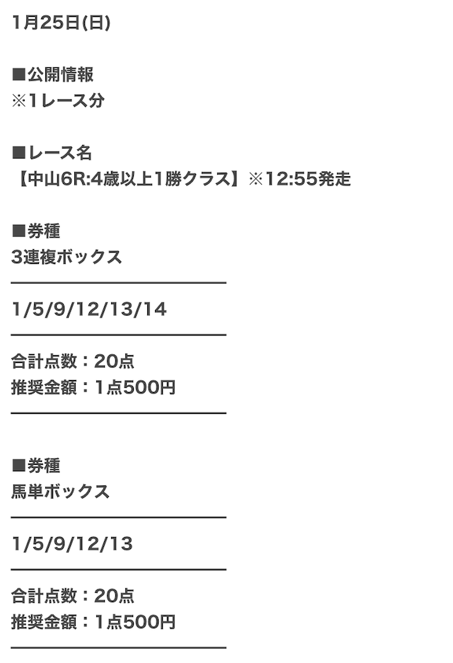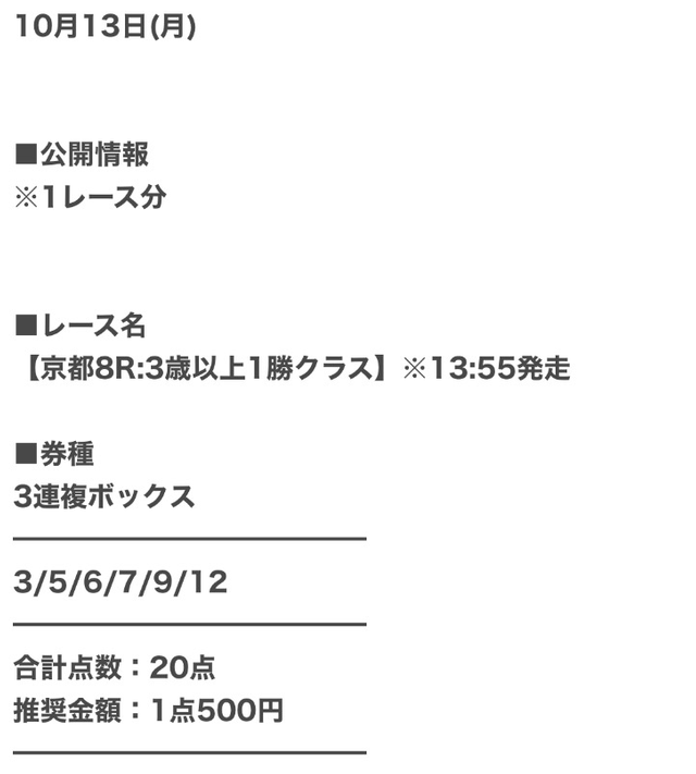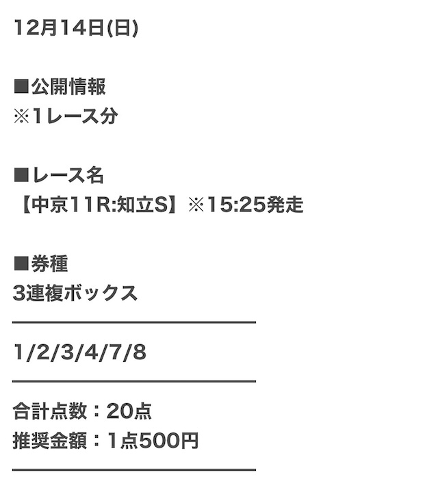 少しでも払戻金を増やすために、1点あたりの馬券代を高めにした予想を公開。