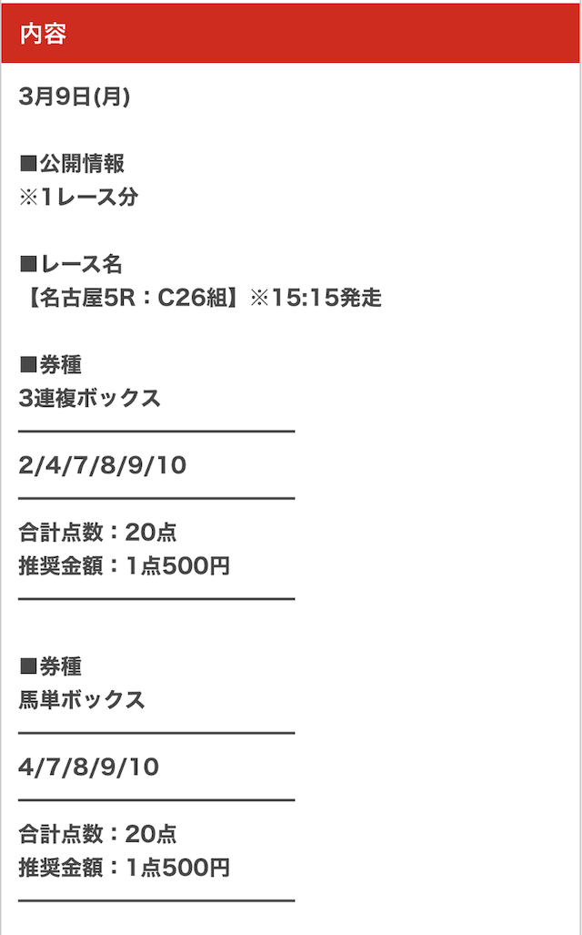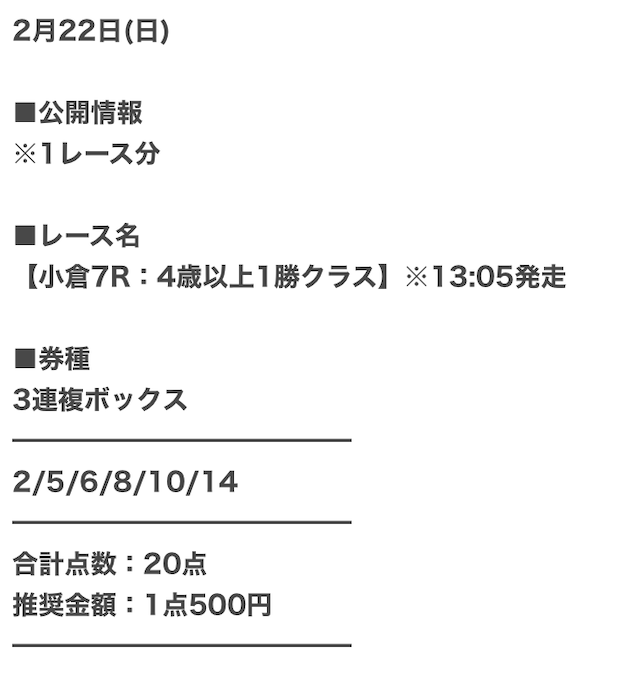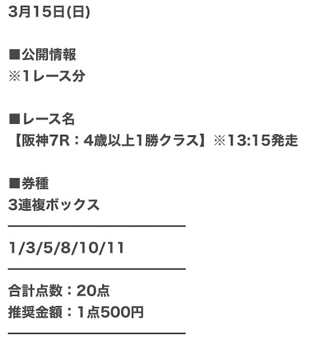 ウマセラが実際に公開した買い目がこちらです。