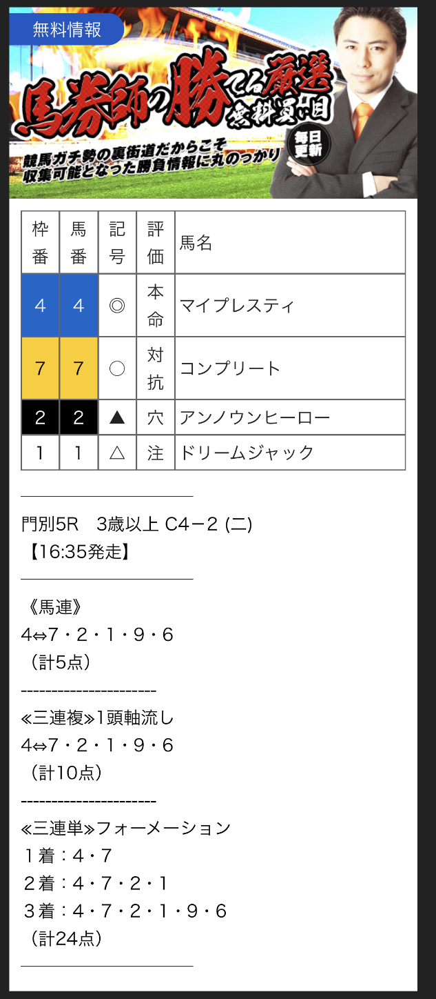 しかし無料予想はあくまでお試しなので、いつまでこのクオリティーが維持できるか分かりません。