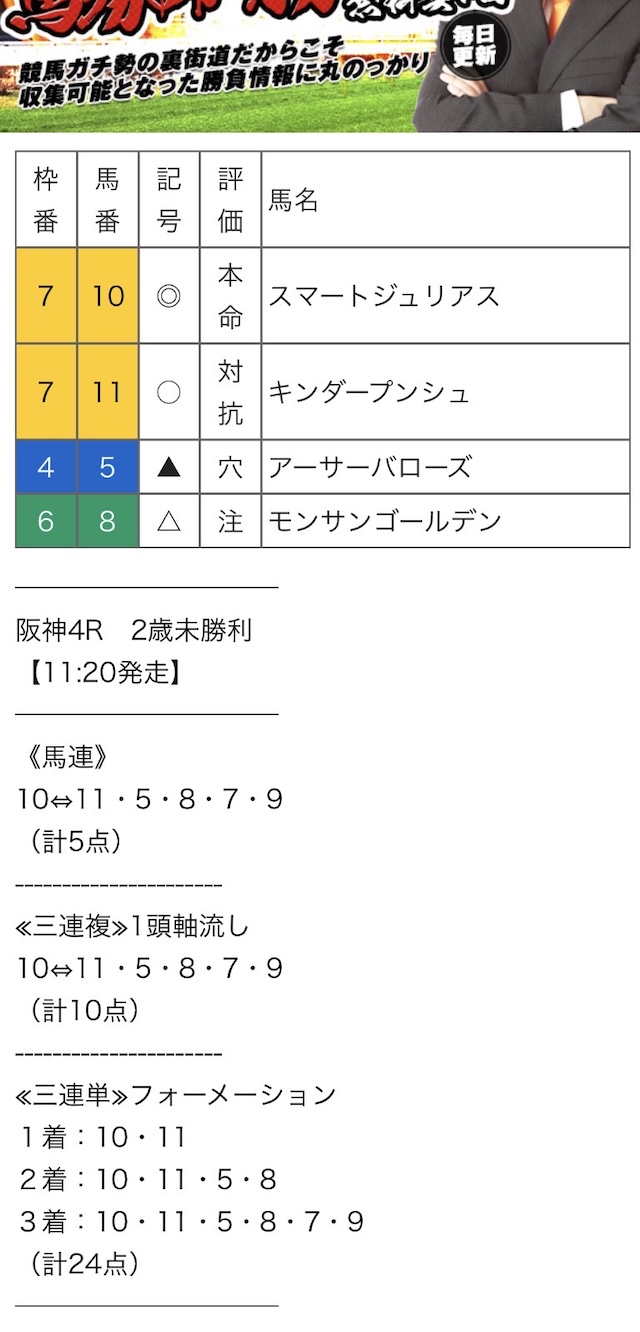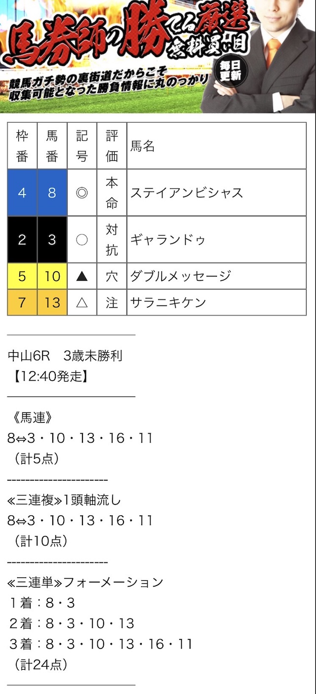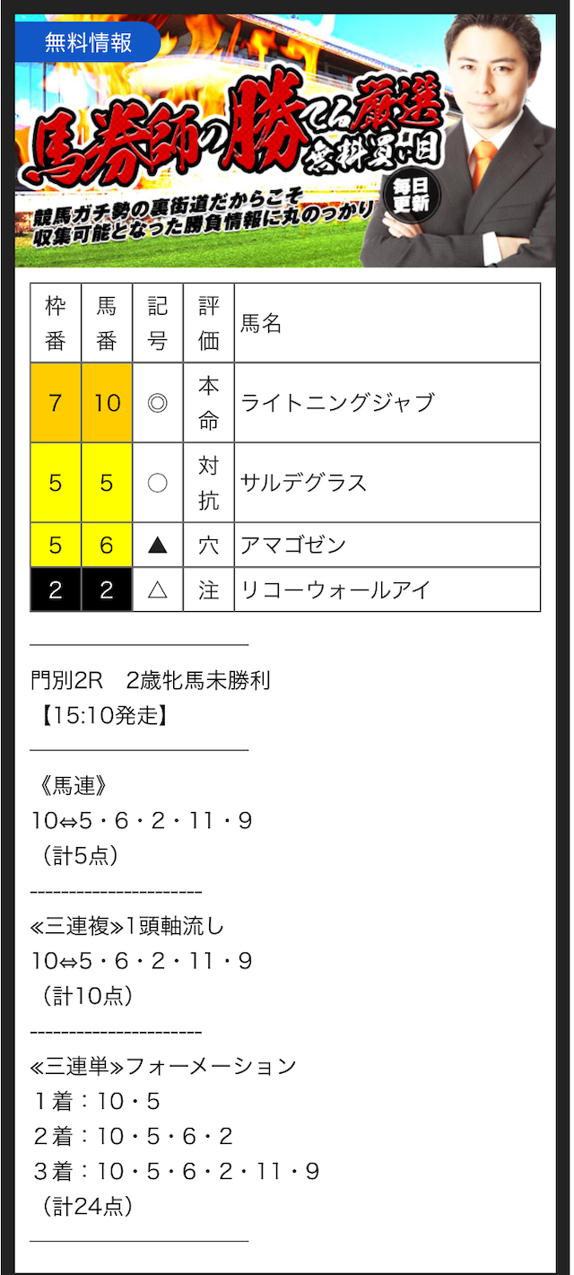 初戦から白星を上げたいところですが、競馬裏街道の予想は当たるのか。