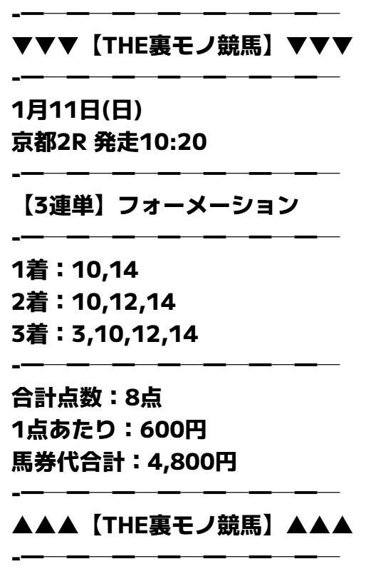 裏モノ競馬の予想は、土日1鞍ずつの公開。