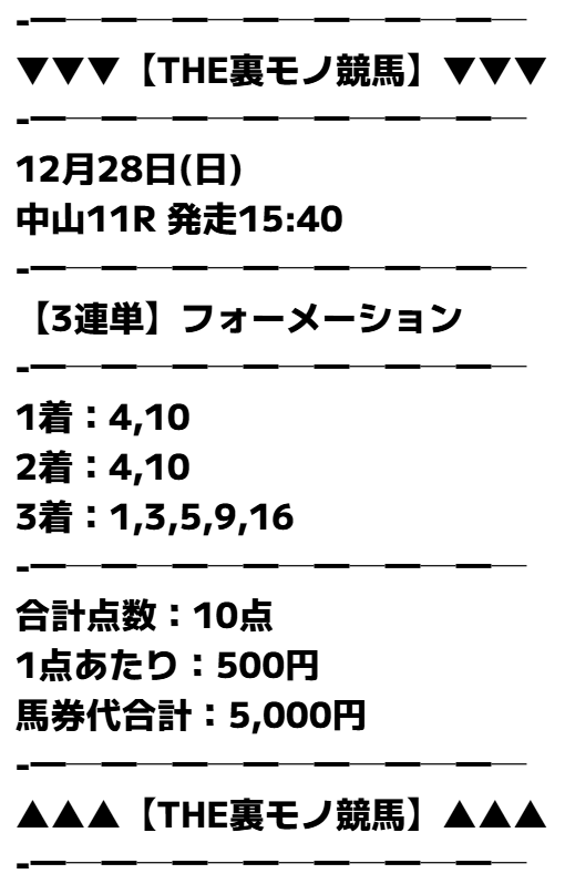 しっかり公約通り、重賞の有馬記念の予想を公開しました。